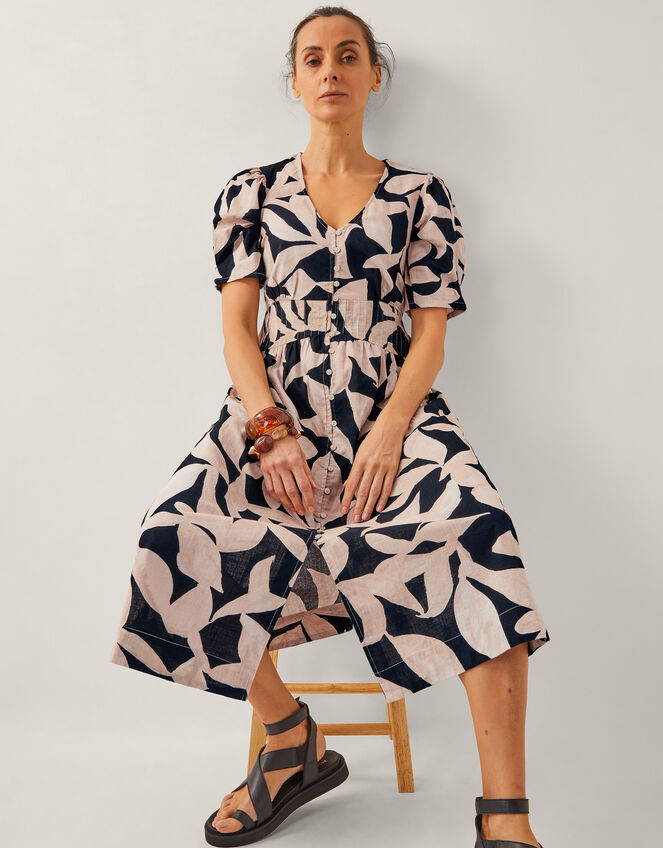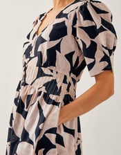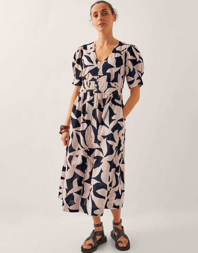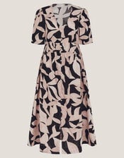 Effortlessly bold, just like you. This breezy midi dress features statement puff sleeves, a flattering cinched waist, and a flowing silhouette, all wrapped up in an abstract print that turns heads. Perfect for sun-drenched days and laid-back evenings. Black
