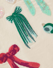 T'is the season. Dress your little one in this fun, festive top during the most wonderful time of the year. Cut with long sleeves in soft cotton fabric, it's decorated with sequin frills, bows, baubles and a 'Fa La La' design on the front. Ivory